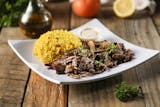 Shredded beef & lamb & chicken shawarma. Served with basmati rice, greek salad with our homemade dressing & freshly made pita bread.