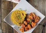 Hummus, tabbouleh, baba ganoush, Chicken, Lamb & Beef Shawarma. Served with basmati rice & freshly baked pita bread.